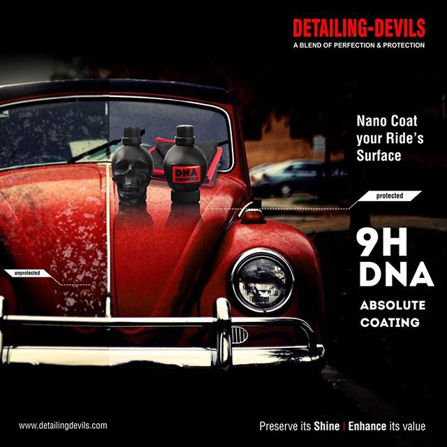9H DNA ceramic coating is applied to vehicles like car, scooter and bikes to safeguard shine and increase the paint life against rain and harsh sunlight. It is considered as the best 9H best nano coating in India and just accessible in type of services only at Detailing Devils.